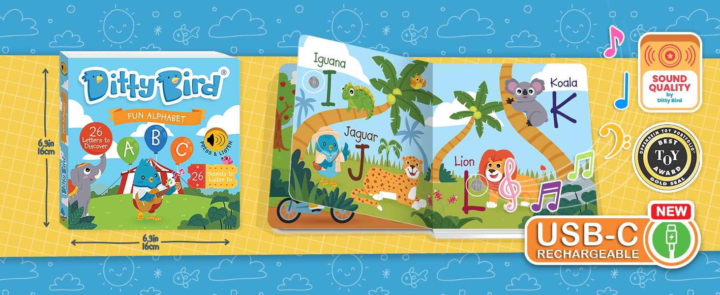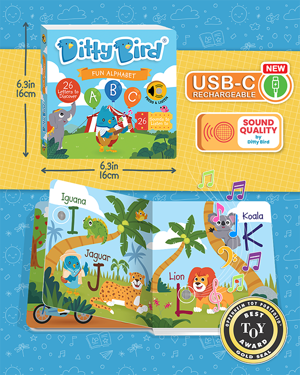 “We love Ditty Bird Books. My son - 1.5 knows how to turn them on and off on his own. He can get an hour (if not more) of entertainment out of these books. Great for when mom or dad need a second. Cute pictures, and great songs. Lyrics included on each page.” - April Smith