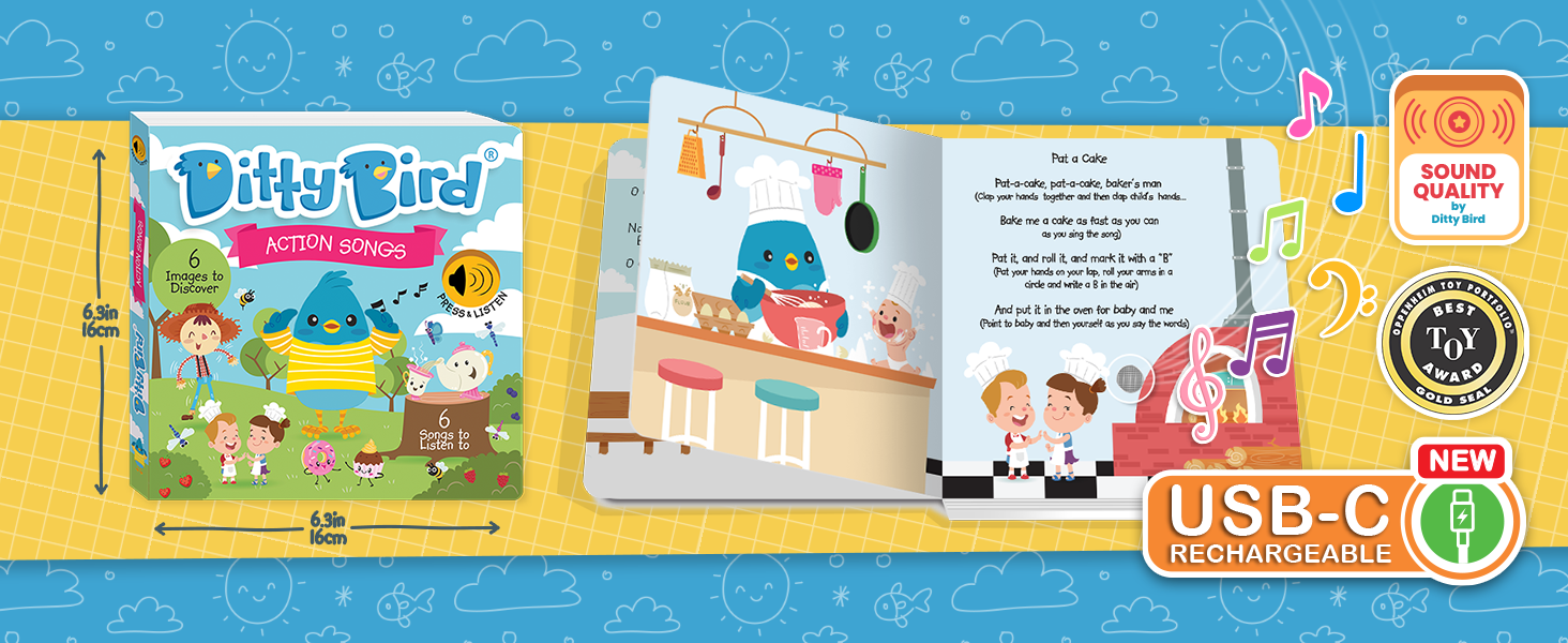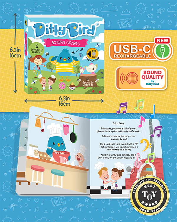 “We love Ditty Bird Books. My son - 1.5 knows how to turn them on and off on his own. He can get an hour (if not more) of entertainment out of these books. Great for when mom or dad need a second. Cute pictures, and great songs. Lyrics included on each page.” - April Smith