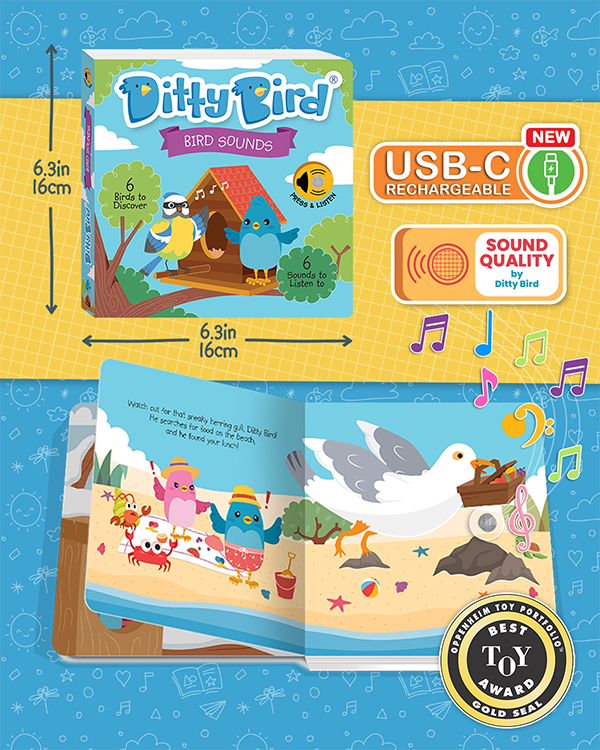 The Ditty Bird Sound Book is designed for children ages 0-3 years old.