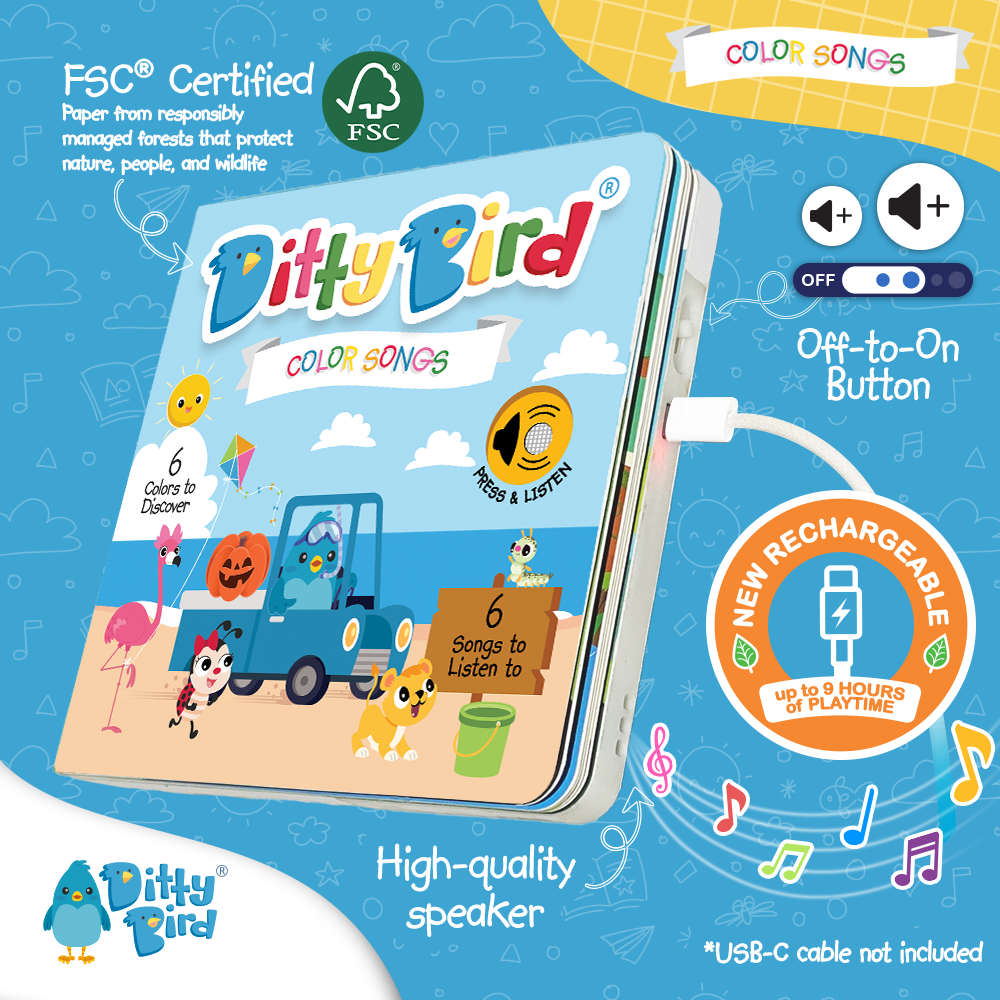 Join Ditty Bird and friends on a melodic journey to discover colors with the Color Songs Sound Book! With its lively tunes and interactive features, this book provides a creative and entertaining way for children to learn and remember colors, setting the stage for a colorful day of preschool fun.