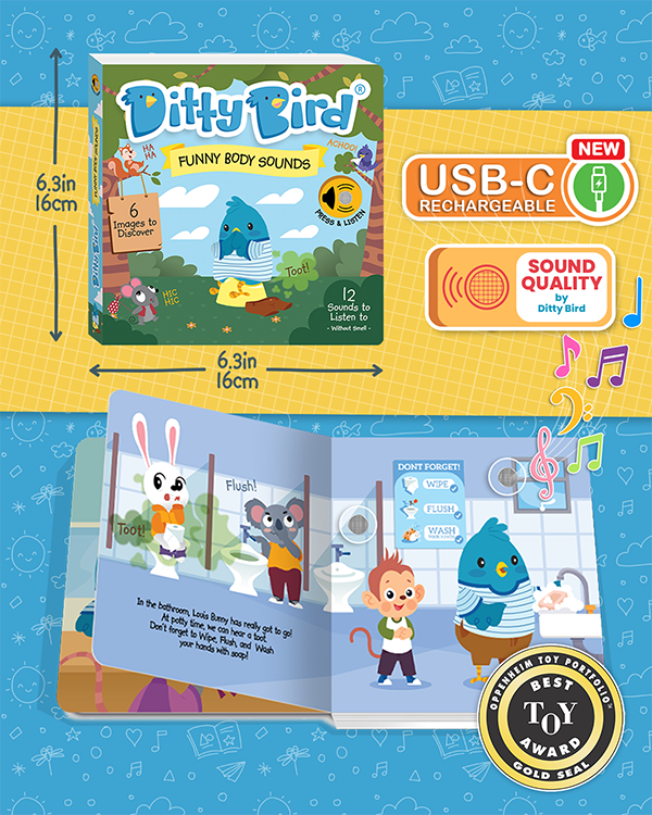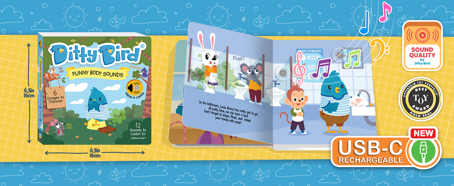 Make potty training a fun-filled adventure with Ditty Bird's Potty Time Sounds Sound Book! With its cheerful sounds and catchy Toot song, this book turns the bathroom into a place of excitement and laughter, helping children feel confident and empowered as they master this important milestone.