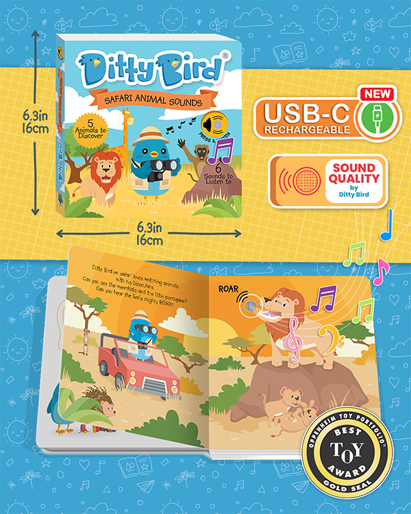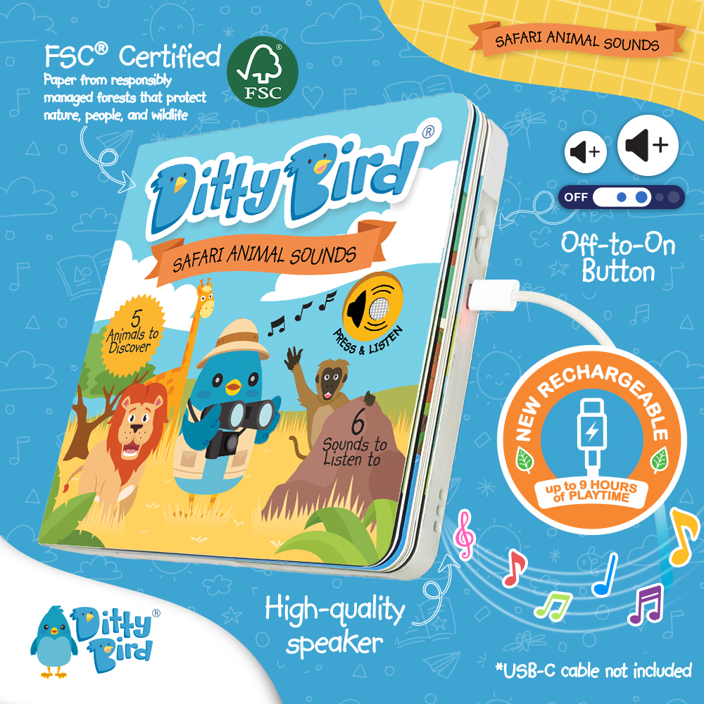 “We love Ditty Bird Books. My son - 1.5 knows how to turn them on and off on his own. He can get an hour (if not more) of entertainment out of these books. Great for when mom or dad need a second. Cute pictures, and great songs. Lyrics included on each page.” - April Smith