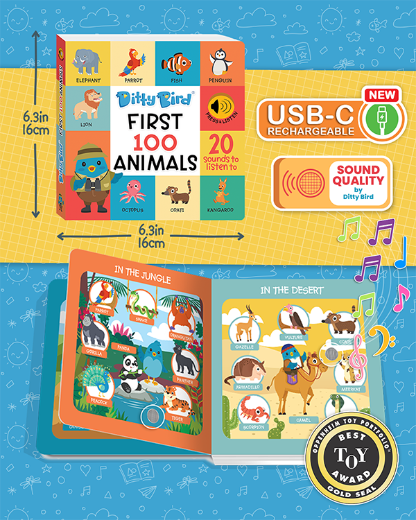 “We love Ditty Bird Books. My son - 1.5 knows how to turn them on and off on his own. He can get an hour (if not more) of entertainment out of these books. Great for when mom or dad need a second. Cute pictures, and great songs. Lyrics included on each page.” - April Smith