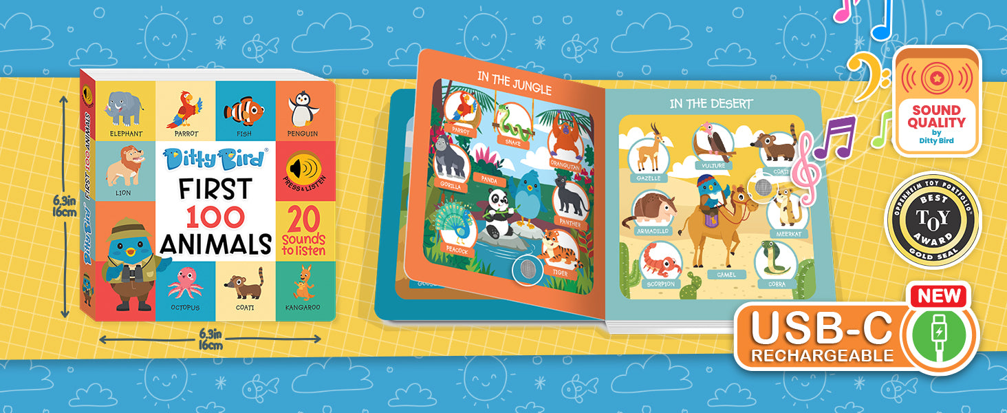 Turn learning into an exciting safari adventure with a captivating 100 animals sound book! Packed with 100 creatures from 12 habitats, and 12 sound buttons offering sounds, fun facts, and songs, it's the perfect way to engage your child's curiosity and inspire a love for the natural world.